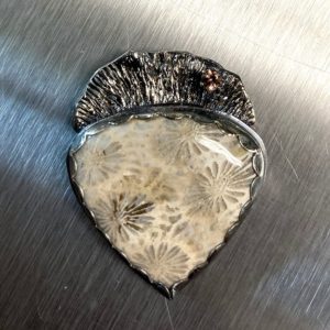 This one-of-a-kind moss agate pendant is designed for those who love jewelry with meaning and presence. The natural moss agate creates its own unique “landscape,” while the handcrafted fine silver setting and gold accent add depth and contrast. A striking, wearable piece of art you won’t see anywhere else.